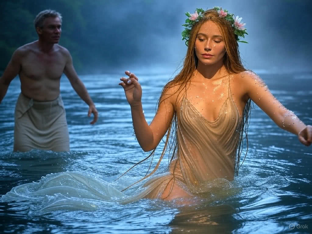 Rzeka, do której zmierzał, zwana była przez starszyznę Srebrną Wodą, bo w blasku księżyca lśniła niby płynne srebro. Wędrował Jaromir brzegiem, patrząc, jak woda mieni się w promieniach słońca, a w sercu jego rodziła się nadzieja na dzień pełen cudów. Wioska jego, choć spokojna, rzadko widywała dziwy, o jakich starcy przy ogniu prawili – o rusałkach, wodnych pannach, co swym śpiewem i pięknem serca ludzkie porywały. Jaromir śmiał się z tych opowieści, mniemając, że to jeno bajania dla dzieci, by strachem przed wodą je trzymać. Ale w głębi duszy, gdzie marzenia się rodzą, pragnął ujrzeć coś niezwykłego, coś, co odmieni jego prosty żywot.