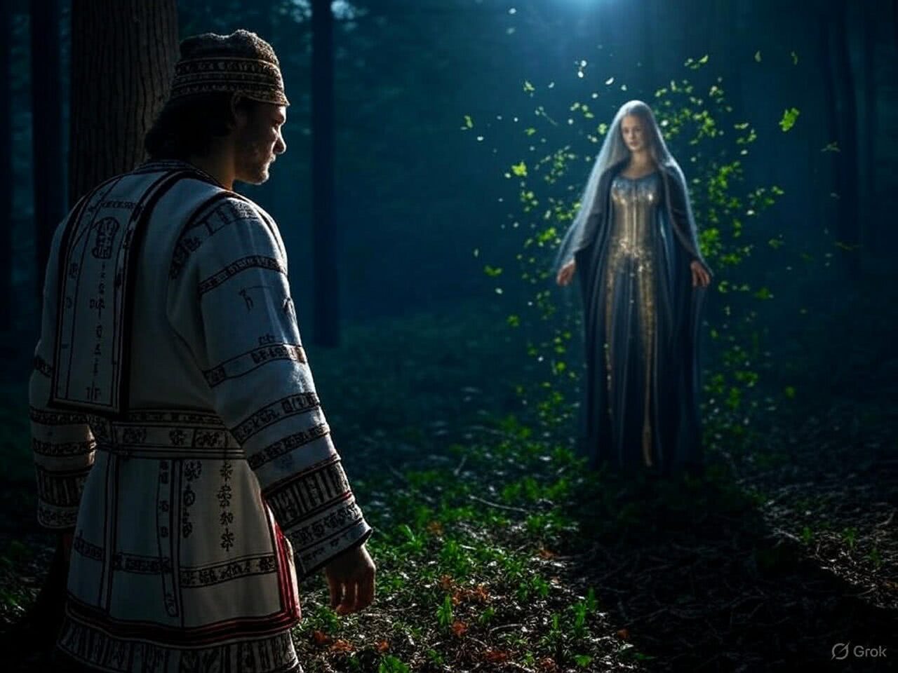 W sercu prastarego lasu, gdzie drzewa szeptały tajemnice przodków, a strumienie nuciły pieśni dawnych czasów, leżała mała osada zwana Zieloną Doliną. Tam, wśród kwitnących łąk i złocistych pól, żył Mirosław, młodzieniec o sercu czystym jak poranna rosa. Każdego ranka, gdy zorza barwiła niebo złotem, wstawał rześko, by orać ziemię i doglądać trzody. Wieczorami zaś, gdy zmierzch kładł się na polach, wędrował ku lasom, gdzie szum liści i śpiew słowików koiły mu duszę.