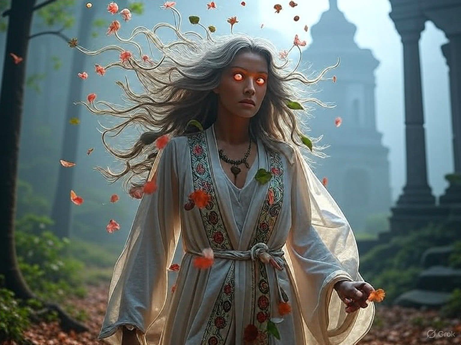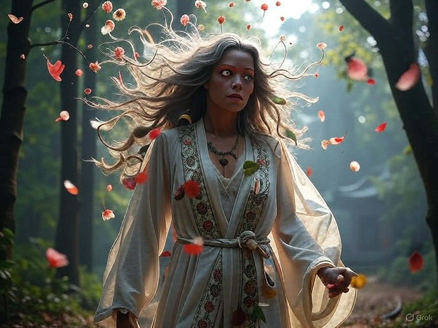 Pewnego dnia, gdy lato rozlewało swe ciepło po świecie, a powietrze pachniało miodem i skoszoną trawą, osada przygotowywała się do Święta Kwiatów. Było to święto radości, wdzięczności za plony i hołd dla duchów lasu, które strzegły ziemi. Mirosław, pełen nadziei i pozytywnych myśli, spędził tygodnie, tworząc piękny wieniec z rzadkich ziół i kwiatów. Gdy nadszedł dzień święta, wieś tętniła życiem: dzieci tańczyły wokół majowego słupa, ich twarze malowane w barwne wzory, a starsi opowiadali legendy o dawnych czasach. Mirosław złożył swój wieniec u stóp prastarego dębu, szepcząc modlitwę do duchów lasu. Nie wiedział, że jego dar przyciągnął uwagę tajemniczej istoty – Wiji zwanej Lilianą. Ukryta w cieniu, obserwowała go z ciekawością, a w jej oczach błyszczało coś więcej – cień pożądania.