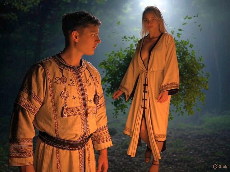 W sercu prastarego lasu, gdzie drzewa szeptały tajemnice przodków, a strumienie nuciły pieśni dawnych czasów, leżała mała osada zwana Zieloną Doliną. Tam, wśród kwitnących łąk i złocistych pól, żył Mirosław, młodzieniec o sercu czystym jak poranna rosa. Każdego ranka, gdy zorza barwiła niebo złotem, wstawał rześko, by orać ziemię i doglądać trzody. Wieczorami zaś, gdy zmierzch kładł się na polach, wędrował ku lasom, gdzie szum liści i śpiew słowików koiły mu duszę.