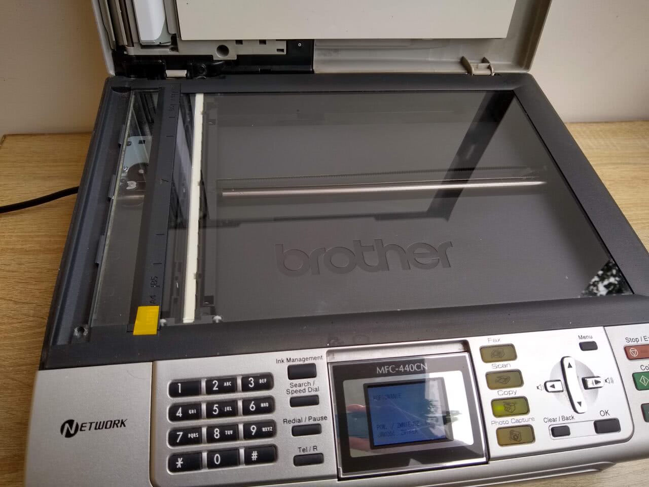 Używane urządzenie wielofunkcyjne Brother MFC-440CN – drukarka + skaner + faks – nie jest w pełni sprawne.