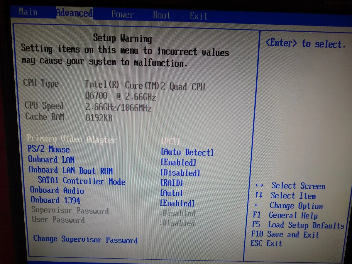 BIOS komputera Core2 Quad: