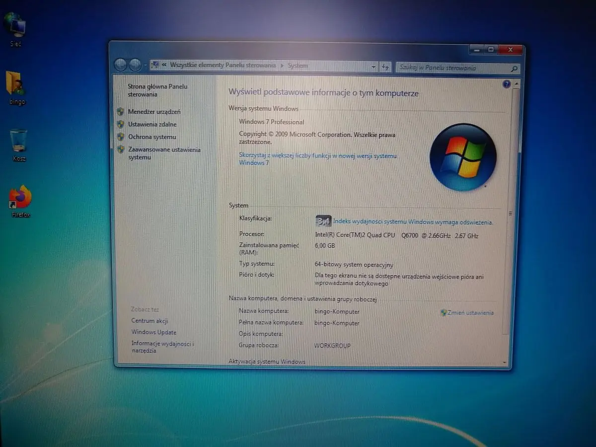 Specyfikacja komputera: