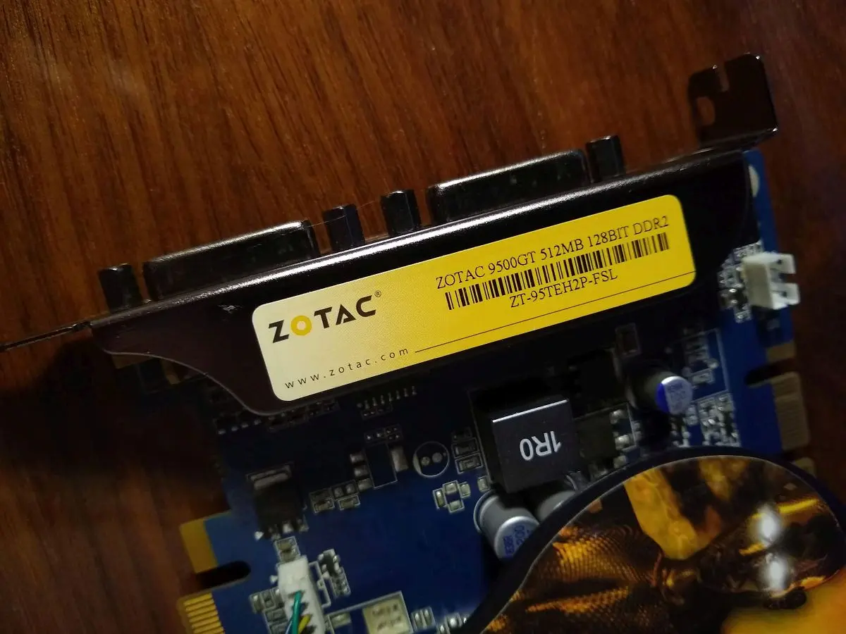 - Karta graficzna – Zotac GeForce 9500GT, używana, inna niż oryginalna (w komputerze nie było oryginalnie zamontowanej karty), ale bardzo podobna do tej co była (wersja GS była)