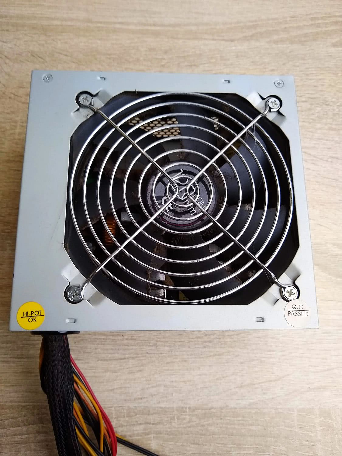 Obudowa komputera to lekko moddowany nowoczesny Krux Trek (KRX0015). Sama obudowa jest bardzo fajna bo niewielka. Posiada boczną szybę, przez którą widać „wnętrzności”. Ten zabieg ma podkreślić Retro maszyny – widać dzięki temu stare komponenty. Do obudowy zostały zamontowane dwa wentylatory 120mm z podświetleniem LED białym. To nie jest komputer, który trzeba intensywnie chłodzić. Wentylatory LED mają zadanie głównie dekoracyjne. Ale nie każdy lubi jak mu świeci „na maksa”. Zostały więc połączone z regulatorem – potencjometrem, który regulując napięcie zmienia zarówno prędkość obrotów wentylatorów jak i (co za tym idzie) jasność podświetlenia. Więc obudowa, dzięki bocznej szybie jak i przodowi z siatkowej blachy, może zarówno służyć jako lampka nocna. A może też być całkiem wygaszona. Ja osobiście wybieram prawie maksymalne przyciemnienie. Dzięki temu nie „świeci jak choinka” a jednocześnie pozwala cieszyć oko subtelnym światłem, i od razu też stwierdzić, czy komputer jest włączony.