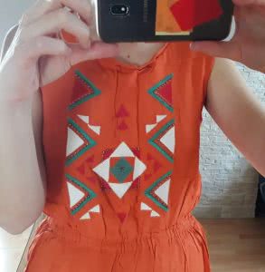 Pomarańczowa sukienka letnia z haftem rozmiar S