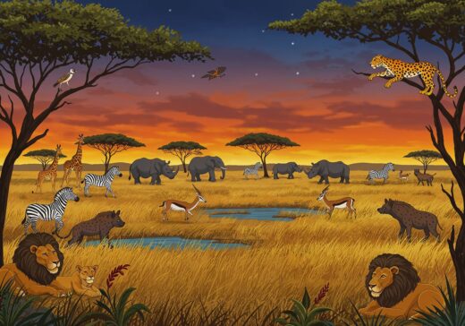 Odkrywamy sawannę Afryki – Wielka Piątka i tajemnice ich dziennych i nocnych przygód
