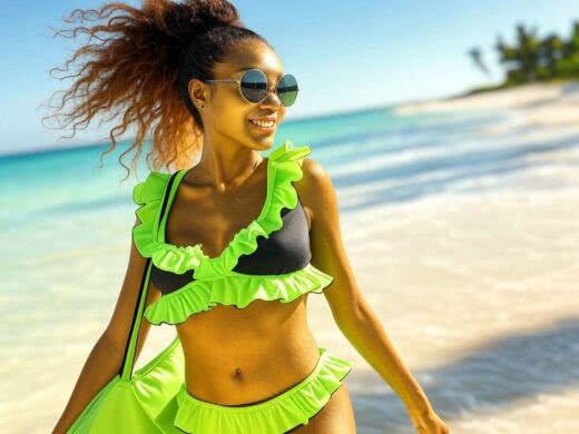 Odkryj czar bikini z falbankami na tropikalnej plaży